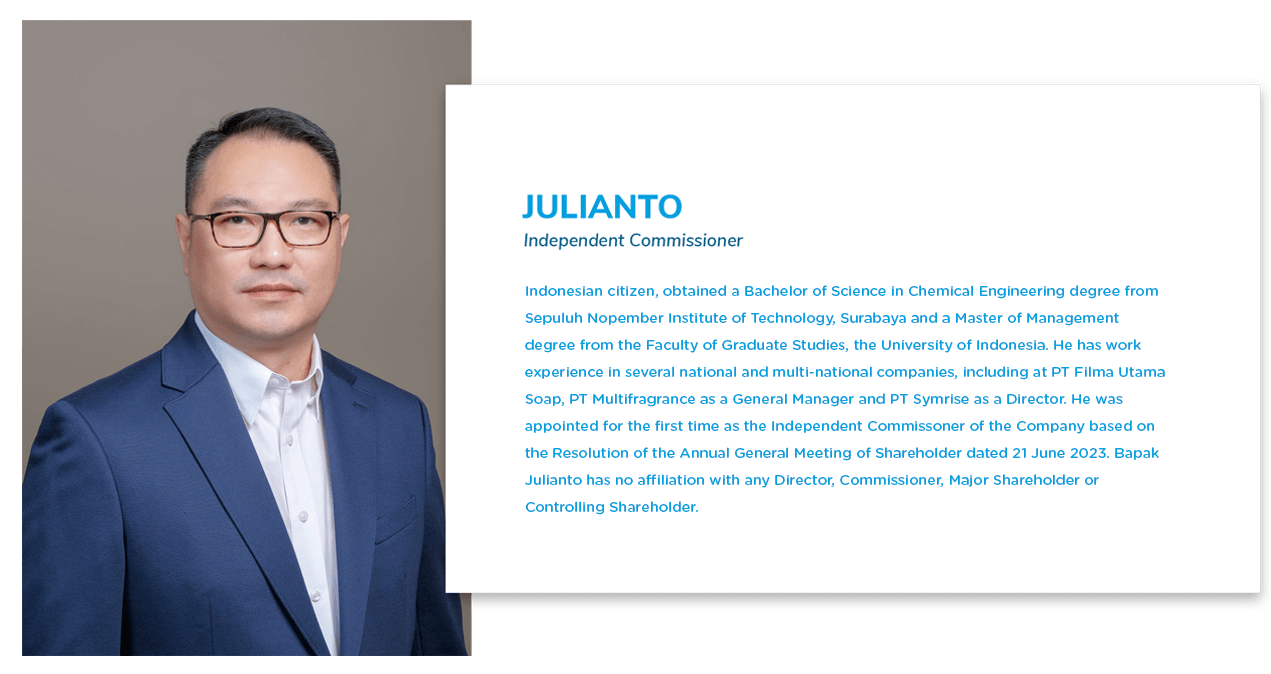 JuliantoIndependent CommissionerIndonesian citizen, obtained a Bachelor of Science in Chemical